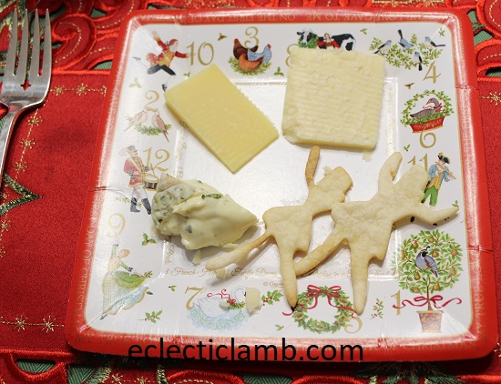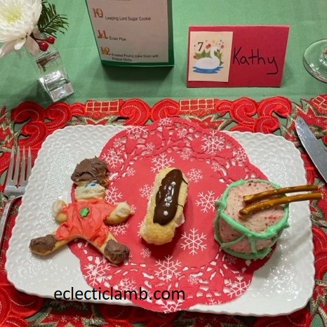 I planned the menu to include some make ahead and freeze and make ahead and refrigerate items. I prepared a lot of items the day before. I tried to keep the courses small since there were 12 courses! We had a set of 4 courses and took a break. I planned it to be a slow meal and it took the place of 2 meals. I was inspired by many of the 12 Days of Christmas themed posts available but I put my own spin on them.