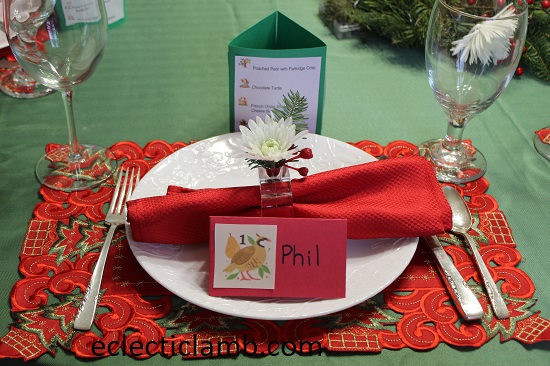 This year for Christmas dinner, I prepared and served a 12 Days of Christmas themed meal (12 Courses!) My parents, friend Carol, and her son Mike joined me.