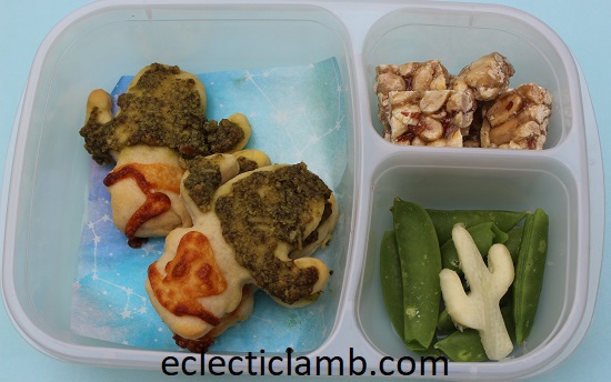 Cheddar Frogs on Pesto and Fresh Mozzarella