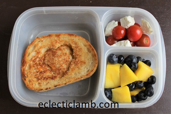 Left Side: Heart – push cookie cutter into cooked grilled cheese, sourdough bread, sharp cheddar