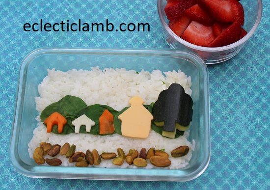 Houses: carrot and radish cut with cookie cutter