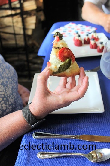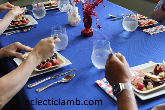 My critique of the meal: I really enjoyed designing and creating the individual vegetarian charcuterie boards. We all enjoyed eating the appetizers. The pizza and dessert were easy and delicious. I made and froze the cookies a week before the party.