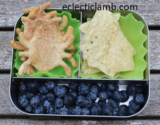 Top Left: Bugs – tortilla chips cut with a cookie cutter, brushed with olive oil, sprinkled with cinnamon sugar – bake in 375 over for about 10 minutes