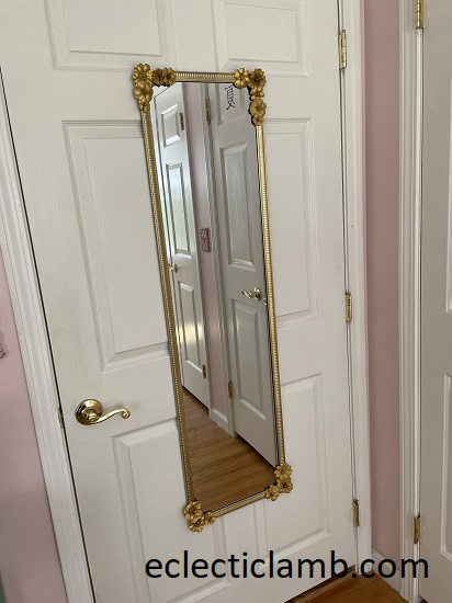 Full Length Mirror: I had this mirror in my apartment. It was silver. I spray painted it gold and hot glued gold flowers I bought.