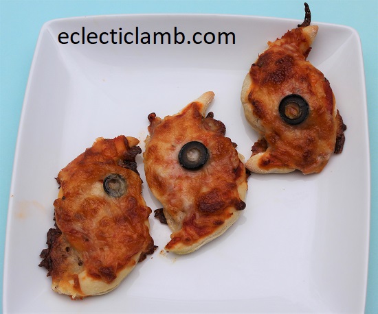 I made this meal for my Dad. I thought that it did not look good so I tried another time to make hurricane pizza. I think the second time came out worse (see below). Maybe hurricanes are difficult to depict with food. Years ago I had a similar problem with hurricane noodles.