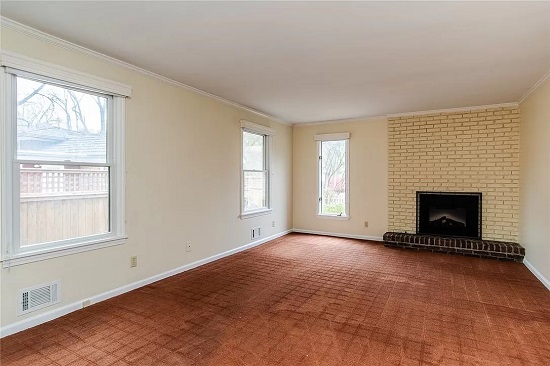 Floor: The room had carpet when I bought the house. My parents and I removed the carpet and my Mom cleaned and took off paint splatters that were all over the floor. I am happy with the historical hardwood floor.