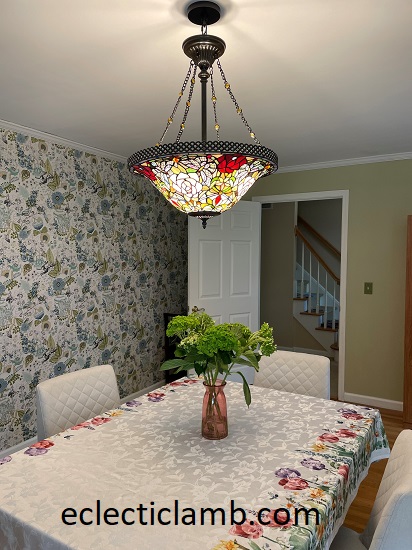 Ceiling Light: There was no overhead light in this room when I bought this house. An electrician did a wonderful job adding it. I struggled with finding the right light for the room. I finally went to Tuthill Lighting in Brighton, NY. Bruce was a dream and helped me find the perfect light for me! I love it!