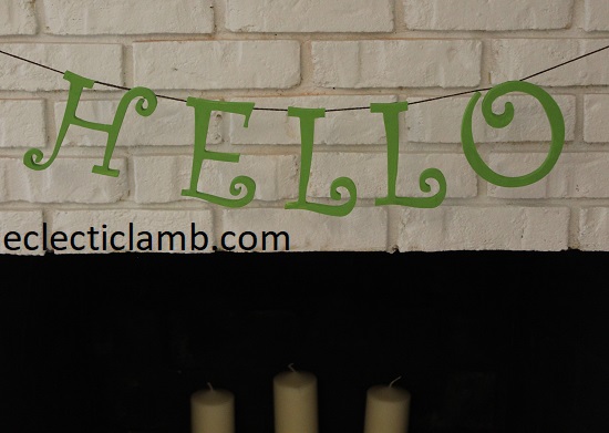 Hello Sign: I made this sign from letters from Michaels. I painted them a green and hot glued to string I had in my craft room.