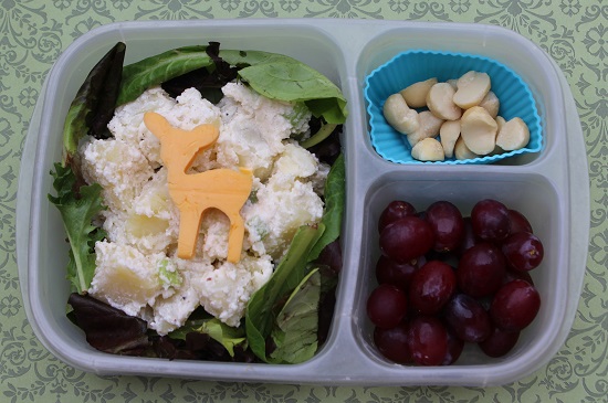 Left Side: Fawn – cheese cut with a cookie cutter, cottage cheese potato salad, assorted lettuce