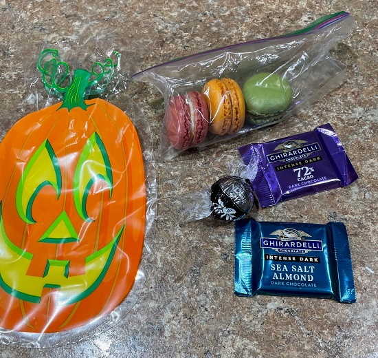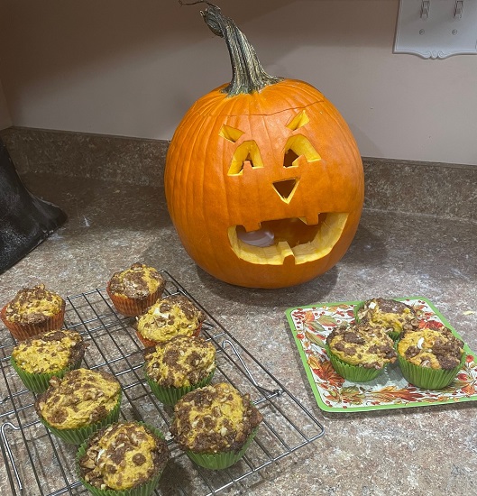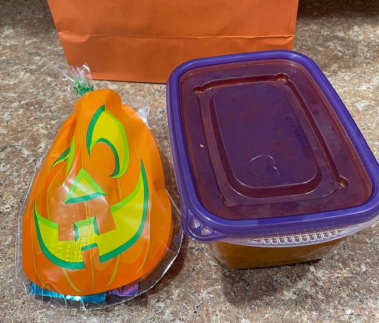 This year was my first time to receive Halloween treats from a neighbor! I was delighted to receive treats and homemade tomato sauce. The sauce had onion, carrots, and celery and was delicious! In turn, I made pumpkin muffins and gave them to neighbors and friends.