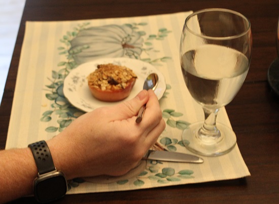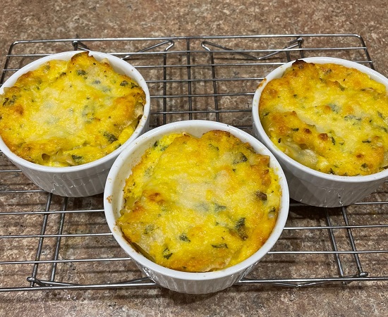 I loved the corn lasagna, it had a lot of flavor. Next time I would consider serving in the ramekin’s instead of waiting for them to cool then unmold. I also highly recommend the apple crisp. Delicious and a fun presentation!