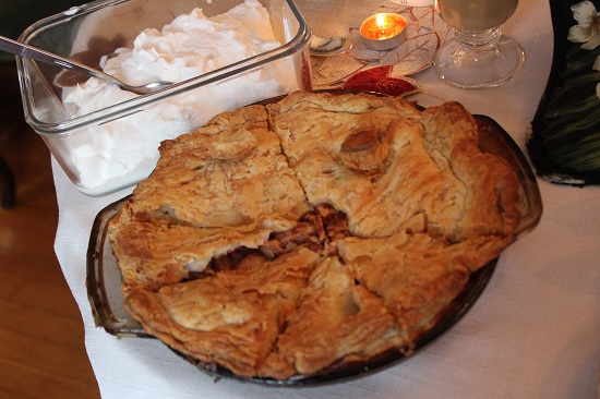 - Apple Tart (my Mom made this with apples, brown sugar, cinnamon and nutmeg baked in puffed pastry at 400 for about 35 minutes) served with fresh whipped cream