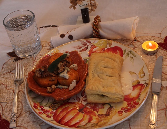 - Vegetable Wellington (I used frozen Puffed Pastry with homemade pesto, goat cheese, roasted zucchini, red bell pepper and asparagus), served with Citrus Beurre Blanc sauce (recipe at the bottom)