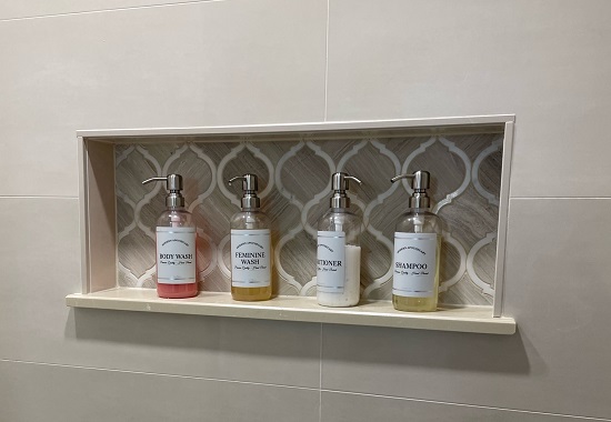 Bottles: My Mom suggested special bottles since I did not like the idea of clear glass doors. Glass doors are the norm and difficult / expensive to do something else. I ordered these and am happy with them so far. Visitors to my home often comment on my Feminine Wash bottle. I like using lavender baby shampoo for those special areas.