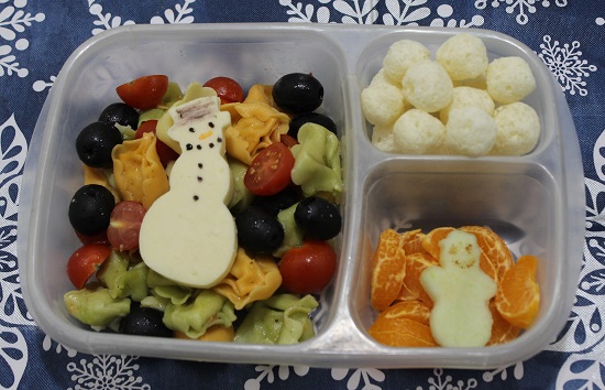 I made this snowman themed tortellini lunch for my Mom. It was an easy but attractive meal on a busy day.