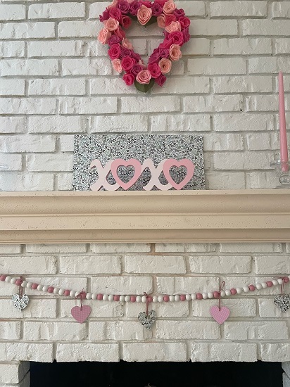 Happy Valentine’s Day! This is my first year decorating my fireplace and mantle for February. Last year I did not yet have the mantle. Also I was too busy working on my house to decorate. I am very pleased with the results! It makes me happy to view it and know that I made it myself.