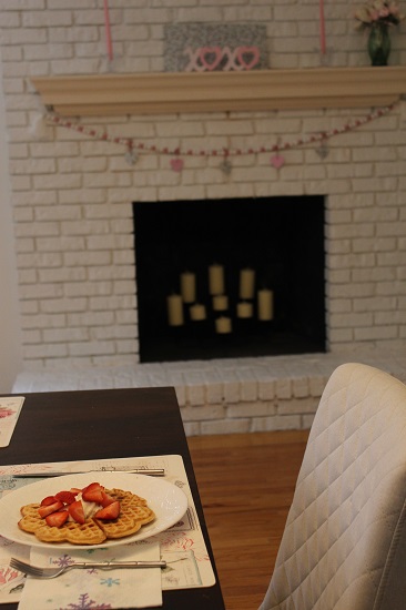 Heart Waffles with Ricotta, Strawberries and Maple Syrup – I made this meal for myself to celebrate myself and have a cute Valentine themed meal in my beautiful dining room. The paper Valentine was an art therapy assignment to make a Valentine for myself.