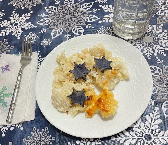 Blue Mashed Potato and Cream Cheese Snowflakes