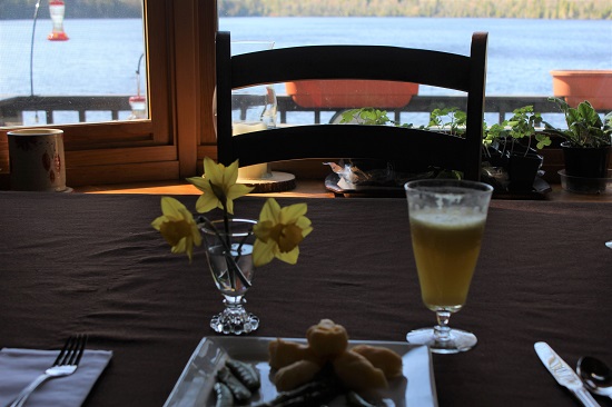I asked my Mom what theme or food she wanted for Mother’s Day. She said Daffodil dinner. It made sense since we celebrated at the mountain Lake House and the daffodils were about to bloom. They were in full bloom for our dinner.