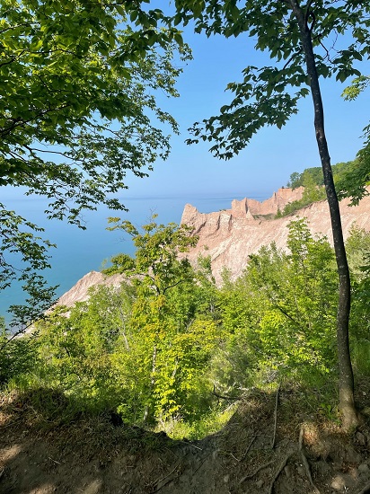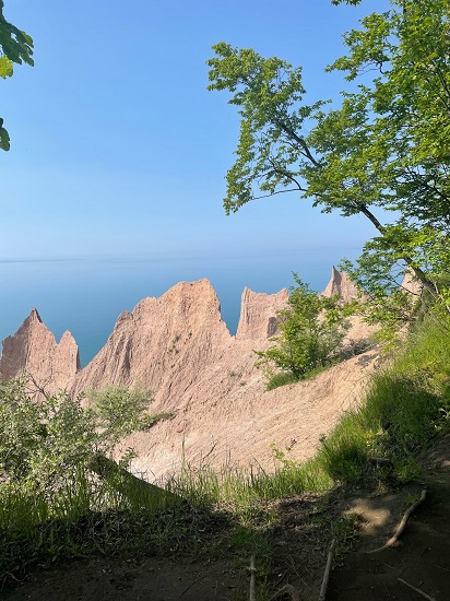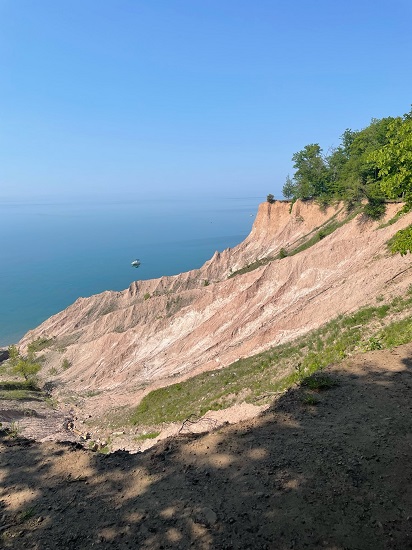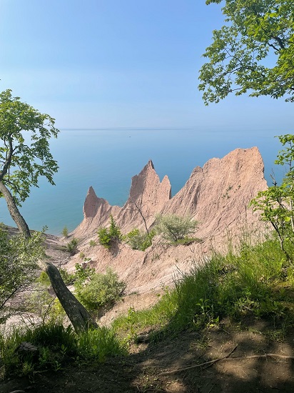 Deborah and I went to Chimney Bluffs State Park along Lake Ontario near Sodus, NY (about an hour from my home). We parked in the alternate parking lot near the steps to the top and a path to the beach. It was my first time there. I was in awe at the beauty! I made a picnic dinner and Deborah brought chairs and delicious homemade iced tea made with lemon balm, spearmint, and some raspberry juice. It was a delightful adventure!