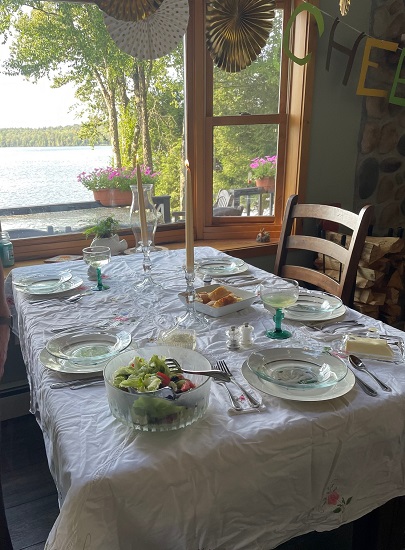 Today is my Dad’s birthday. Over Labor Day weekend we celebrated my Dad’s birthday at my parent’s Lake House. My brother and sister-in-law celebrated with us. Our celebration included the birthday breakfast he requested (part of my traditional Christmas breakfast) and a multi-course Italian dinner. My brother and sister-in-law made the birthday banner at my request since Amazon lost the one I ordered.