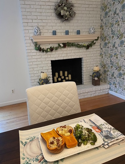 Once again, my dining room is decorated for fall. This year, I added a garland. I love having holiday decorations I can bring out each year!