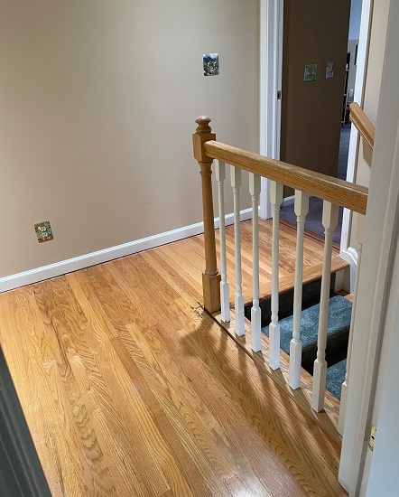 Today I am revealing my renovated hallways. I am happy with the end results and am glad it is finally done. The last item was the carpet runner for the stairs.