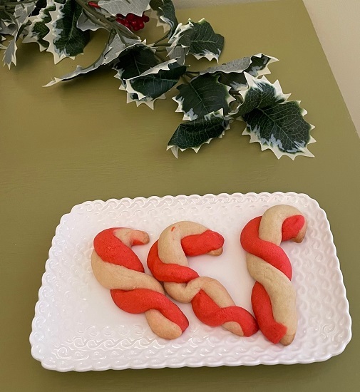 Mashed Potatoes and Red Bell Pepper Candy Canes