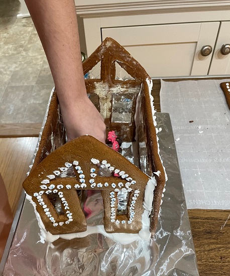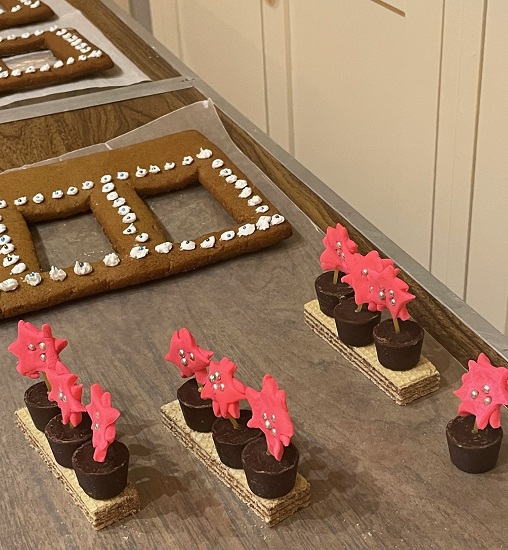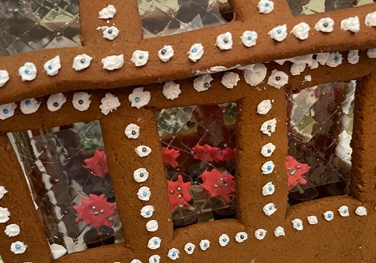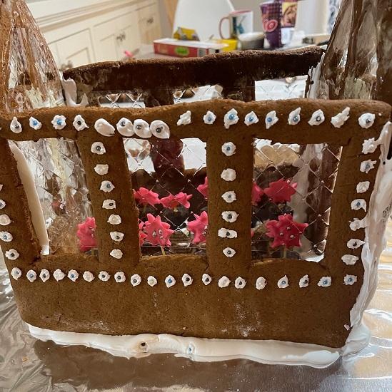 My niece made a gingerbread greenhouse while visiting me this year. I suggested it because I always wanted to make a greenhouse out of gingerbread and I thought she would like it. It is beautiful!