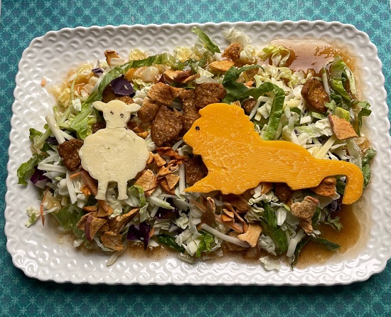 I often celebrate the beginning of March with lamb or lion food. This year I garnished a salad with cheese cut-outs.
