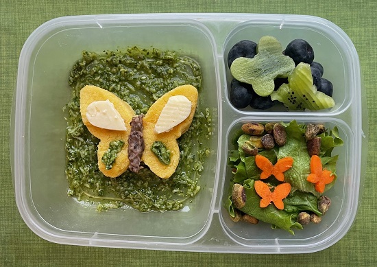 Bottom Right: Butterflies – Carrot cut with a cookie cutter, pistachio nuts, lettuce