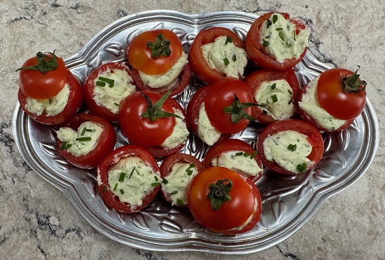 - Stuffed Cherry Tomatoes (cream cheese, mascarpone, garlic clove, fresh rosemary)