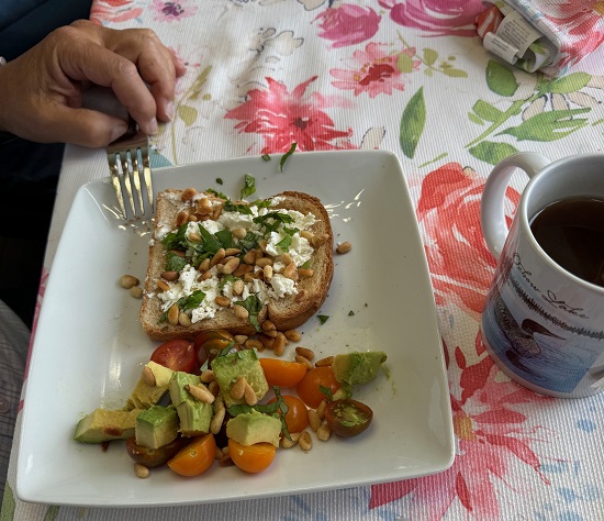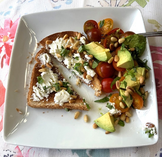 Open-Face Goat Cheese Sandwich with Tomato & Avocado Salad