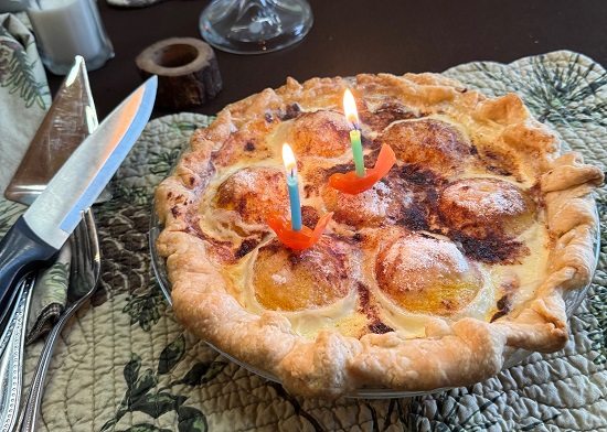 Today is my Dad’s birthday. Last weekend we celebrated his birthday at my parent’s Lake House. Carol celebrated with us. When I asked my Dad what dessert he wanted, he said, “Peach Pie”. I immediately thought of my ex-mother-in-laws peach pie. It is straightforward to make but special. I actually had her recipe and it came out wonderful! I think it was the hit of the meal. We are still talking about that pie. My family is spoiled by my homemade ravioli – while delicious it has become ordinary to them.