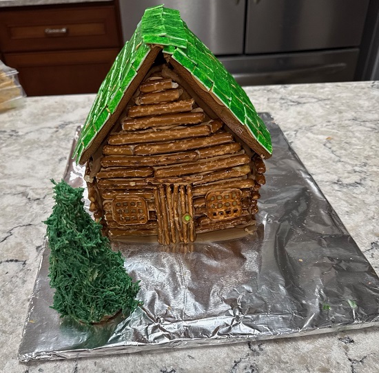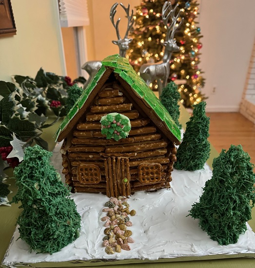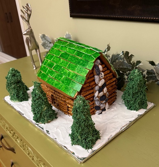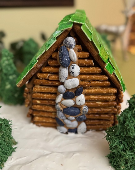 This year I checked another theme off my Gingerbread House to-do list! I made a pretzel log cabin. Rustic is not my normal design aesthetic (perhaps that is why I did not do a log or thatched roof). I am delighted with this beautiful house!