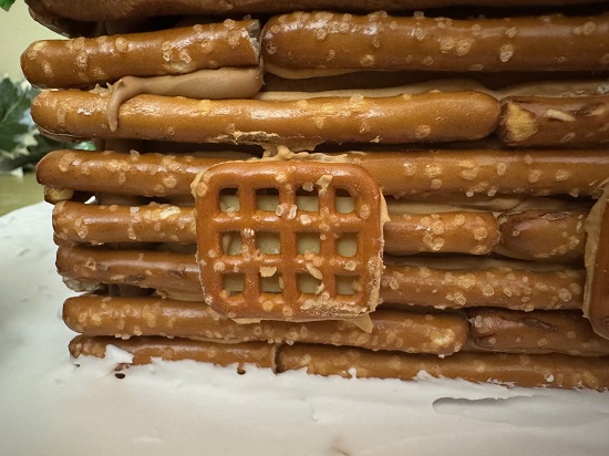 Walls: Gingerbread covered with Synder’s of Hanover Dipping Sticks Pretzels