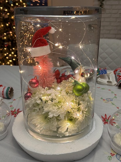 Arrangement: Snow Globe – my Mom planned this and niece helped her create it.