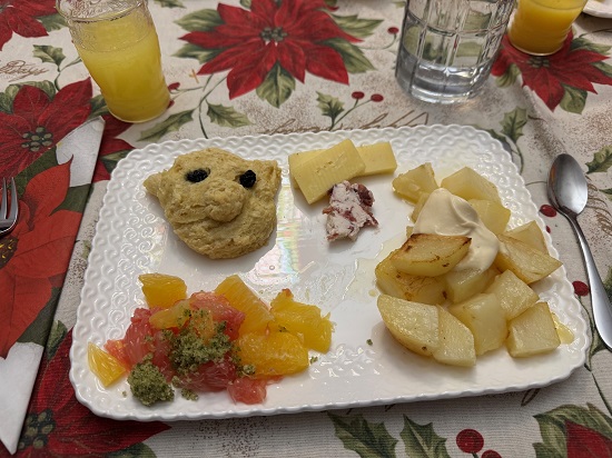 There were 5 of us for Christmas day breakfast – Mom, Dad, me, Andy, and Kerry. This year, I added a cheese plate to our normal menu. My crowd ate some of the cheese but I think they are just as happy without it.
