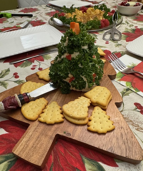 - Christmas Tree Cheeseball with Themed Crackers