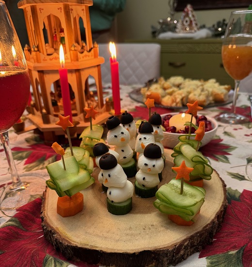 - Mozzarella Snowmen with Cucumber Carrot Trees