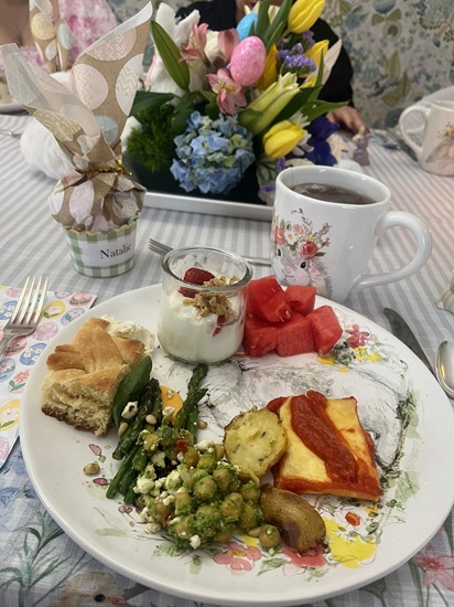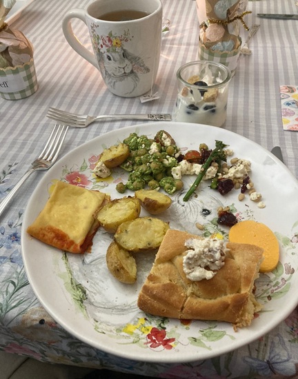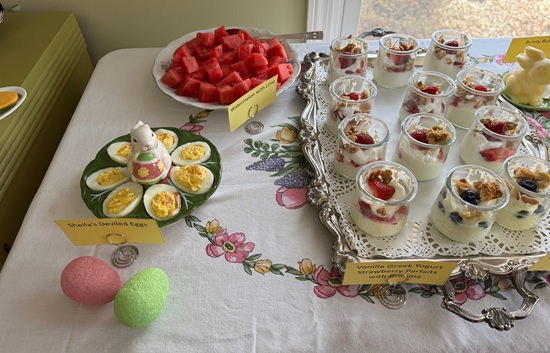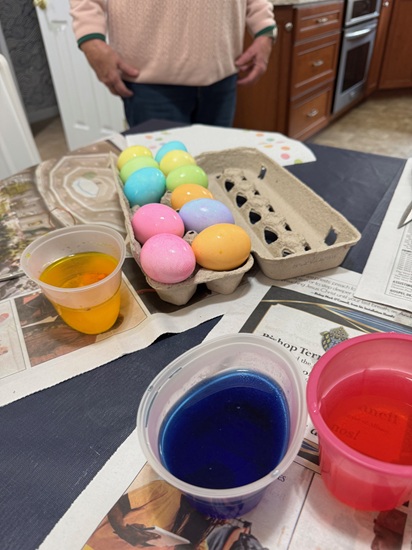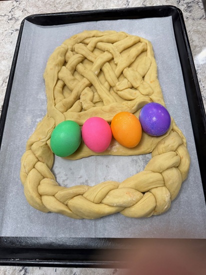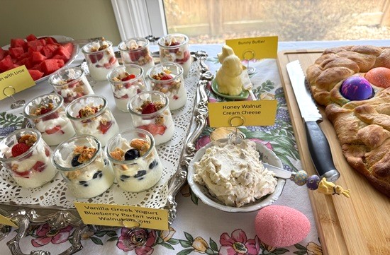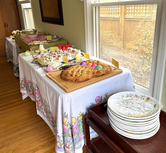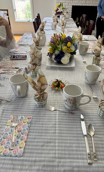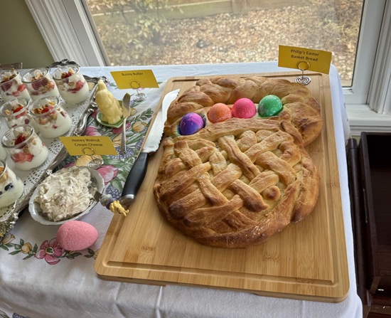 The day before Easter, I hosted our traditional bread meal and invited Renae, Jeff, Natalie, Elizabeth, Renae’s parents, and Jeff’s parents to join my parents and me. In total, there were 11 of us around the table—making it feel especially lively and festive. My dad enjoys the tradition of making a full pan of bread, and it was wonderful to have plenty of people to share it with. This year was extra special for me because it was my first time setting up a buffet in the dining room, which turned out to be both fun and rewarding.