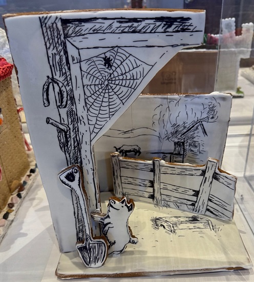 This year I checked another theme off my Gingerbread House to-do list! I made a pretzel log cabin. Rustic is not my normal design aesthetic (perhaps that is why I did not do a log or thatched roof). I am delighted with this beautiful house!