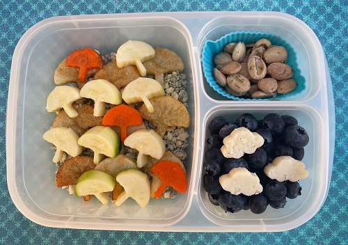 Right Side: Frog – Green apple cut with a cookie cutter, blueberries