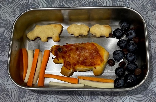 Left Side: Elephants – Bell pepper and cucumber cut with a cookie cutter, romaine, Tortilla chips – cut flour tortilla with cookie cutter, brush with olive oil, sprinkled with salt – bake in 375 over for about 10 minutes,