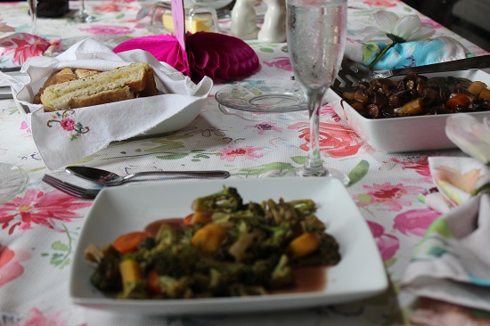 I made a mostly make ahead meal for my Mom, Dad, brother, sister-in-law and myself. It was a fun way to enjoy a meal with family and welcome spring.