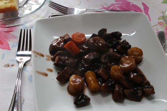 Broccoli and Rainbow Carrots Bourguignon (for me since I don’t eat mushrooms)