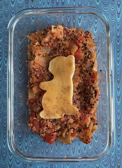 I don’t think that these look like cats but that is what they were supposed to be. I made this for my friend Carol. When I asked for her food or theme requests, she requested the quinoa cakes I shared here. I always enjoy requests and presenting food in different ways and these are delicious quinoa cakes.